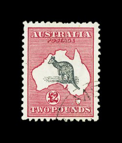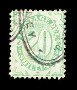 39 O imageS.G. #D44, 1902-04 20/- Emerald green postage due, used, Sydney oval cancel, faint toning mostly on reverse, otherwise a fine example of this scarce postage due (Scott #J22; $2,750.00). (Image) £2,250