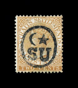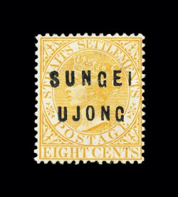 381 og imageS.G. #24, 1882 8c Orange, with "SUNGEI UJONG" overprint Ty. 12+14, bright and fresh, disturbed o.g., very fine for this scarce stamp; 1970 PF certificate (Scott #17; $825.00). (Image) £1,400