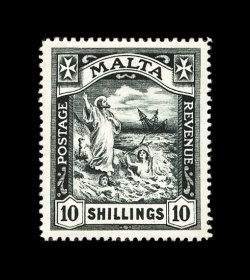 388 og imageS.G. #96, 1919 10/- Black, an outstanding mint example of this popular rarity, being exceedingly well centered, intensely rich color and impression on fresh paper, full o.g., lightly hinged, extremely fine and particularly choice; ex-Cole (Scott #65; $3,500.00). (Image) £2,500