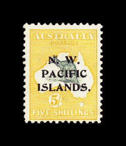 570 og imageS.G. #83, 1916 5/- Grey and yellow, Die II, bright colors, o.g., nearly very fine; signed H. Bloch and accompanied by a 1976 PF certificate; ex-Israelow (Scott #8; $700.00). (Image) £800