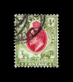 581 O imageS.G. #144a, 1903 4p Scarlet and sage green, wmk. crown and "CA", "Iostage" for "Postage", used example of this major plate variety, cancel well clear of the bottom showing the variety well, wonderfully and exceptionally well centered, bright colors, extremely fine; this variety on the early printing of this value, being in the first state of the variety, is very scarce; 1992 BPA certificate (Scott #66 var.). (Image) £450