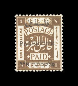 585 og imageS.G. #38, 1920 1m Sepia, perf. 14, unusually well centered, rich color, o.g., lightly hinged, very fine; a scarce stamp; 1973 RPS certificate (Scott #15e; $625.00). (Image) £500