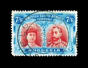 619 O imageS.G. #162, 1910 7/6 Carmine and bright blue, an attractive used single with central Gwelo c.d.s., colors are radiant (blue has slightly run), fresh white paper, very fine and choice (Scott #116 var.). (Image) £950