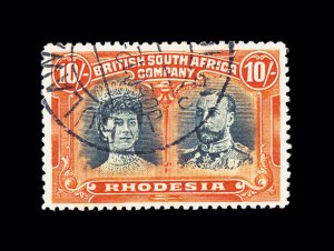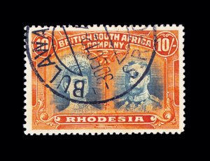 621 O imageS.G. #164, 1910 10/- Blue green and orange, delightful used single with sharp Bulwayo c.d.s., perfectly centered, excellent fresh colors on bright white paper, extremely fine (Scott #117; $275.00). (Image) £375