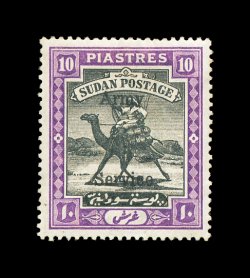 721 og imageS.G. #A13, 1911 "Army Service" overprint Ty. A3 on 10Pi Black and mauve, choice mint example of this key high value, extraordinarily well centered with rich intense colors, o.g., l.h., extremely fine; 1954 BPA certificate (Scott #MO12; $500.00). (Image) £450