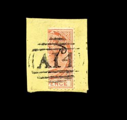 731 O imageS.G. #7, 1880 "1d" manuscript surcharge on half of 6p Orange, tied to piece by full strike of "A14" cancel, rich bright color, very fine and attractive; 1969 BPA certificate (Scott #7; $880.00). (Image) £750