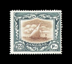 827 og imageS.G. #260g, 1913 200R Brown and black Dhow, attractive mint single, excellent colors with detailed impressions, o.g., l.h., very fine; signed H. Bloch (Scott #140; $700.00). (Image) £650