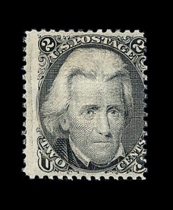 183 O image#84, 2c Black, "D" grill, a superlative used example of one of the rarest of all the regular production grilled issues, in addition to being one of the most challenging to find in premium condition such as this, possessing choice centering amid remarkably wide margins most uncharacteristic of the "D" grills, spectacularly intense color and an incredibly detailed impression on bright fresh paper, perfect strike of a target cancel, extremely fine gem; a major condition rarity, with only a handful that exist in comparable quality; 2000 PF certificate. (Image) 3,750.00