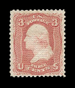 187 og image#85C, 3c Rose, "Z" grill, a magnificent mint example of this exceedingly rare grilled stamp, being in a quality unlike any other we are aware of, possessing a remarkable overall brilliance and freshness, with exceptionally strong rich color and a prooflike impression on bright paper, marvelously well centered and margined, full clean o.g. which shows an easily identifiable "Z" grill impression, relatively lightly hinged, certainly extremely fine for this; one of the rarest stamps in United States philately and clearly one of the finest, if not the finest, in existence; we believe there are less than twenty examples that exist still retaining their original gum, and of this scant quantity very few are completely sound as is the example offered here; 1968 and 1989 PF certificates. (Image) 13,500.00