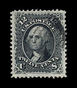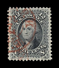 189 O image#85E, 12c Black, "Z" grill, a superb used example which possesses tremendous eye appeal, featuring near perfect centering within very large margins (both qualities are most uncharacteristic of this notoriously challenging stamp), rich luxuriant color and an incredibly detailed impression on bright paper, all marvelously and strikingly complemented by a red double-ring town c.d.s., extremely fine; a gem example of a rare grilled stamp; certainly among the finest quality used examples in existence, and one of the few bearing a colored cancellation; 1995 PF certificate. (Image) 1,700.00