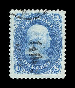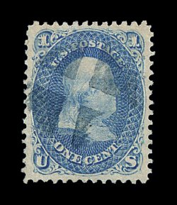 192 O image#86, 1c Blue, "E" grill, highly select used example, featuring extravagantly large margins all around and being perfectly centered within them, strong color and a crisp detailed impression, light quartered cork cancel centrally struck, extremely fine; examples of the grilled issues in this quality are truly rare; 1993 PF certificate. (Image) 475.00