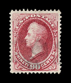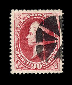 306 O image#155, 90c Carmine, a most remarkable used example, featuring absolutely immense margins and being perfectly centered within this vast expanse, additionally this stamp boasts spectacularly intense color in a deeper shade than any other we have seen, prooflike impression as well on bright paper, bold circle of wedges cancel that is mostly face free, extremely fine; an incomparable gem for the finest collection; 2000 PSE certificate. (Image) 300.00