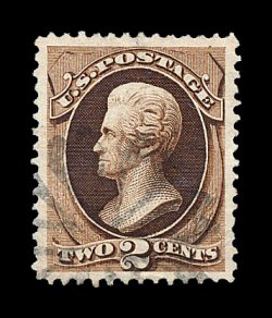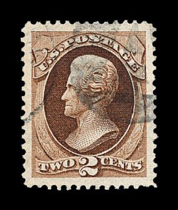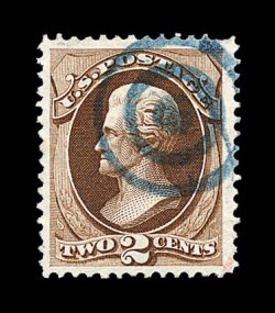 309 O image#157, 2c Brown, well centered within large margins, intense shade, striking bold blue target cancel, trivial pulled perforation at top, otherwise extremely fine; 1992 PF certificate; ex-Morris. (Image) 18.00
