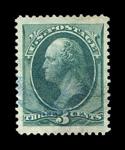 312 O image#158, 3c Green, an amazing used example, featuring gargantuan margins and being wonderfully well centered within them, deep rich color, lightly cancelled, extremely fine; a "one-in-a-million" gem; 1989 PF certificate; ex-Morris. (Image) 0.60
