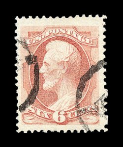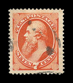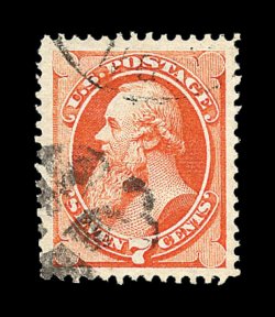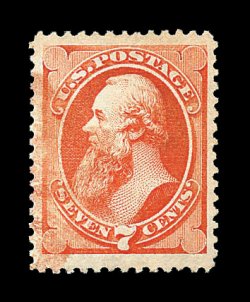 317 O image#160, 7c Vermilion, lovely used example, possessing extraordinarily large and wonderfully well balanced margins all around, gorgeous intense and vibrant color on bright paper, all complemented by a striking and scarce red cancellation, extremely fine gem; a stamp with great eye appeal; 1990 PF certificate. (Image) 90.00