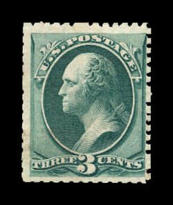 339 O image#184, 3c Green, flawlessly centered amid absolutely gigantic margins, intense prooflike color and impression on brilliantly fresh paper, light face-free cancellation confined to bottom right, superb; a simply amazing stamp; 1999 PF certificate. (Image) 0.60
