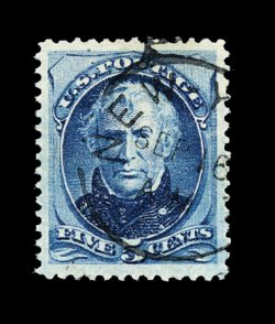 340 O image#185, 5c Blue, precise centering amid extra-large margins, sumptuously rich color on fresh paper, light neat strike of a New York town c.d.s., unusually even and intact perforations, extremely fine; a perfect little gem; 1999 PF certificate. (Image) 12.00