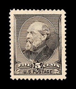 363 og image#205C, 5c Gray brown special printing, without gum as issued, wonderfully well centered within large margins, rich luxuriant color in the distinctive gray brown shade attributed only to the Special Printings, prooflike impression on fresh paper, extremely fine. A gem example of this incredibly rare stamp. A total of only 22 different copies have been certified by the Philatelic Foundation as genuine Five Cent Garfield Special Printings. Because of the extreme rarity of this stamp, very few collectors will ever have a chance to own a copy of this elusive Special Printing, and fewer still can acquire one in such outstanding quality. Accompanied by a 1959 PF certificate; ex-Engel, Klein. (Image) 40,000.00