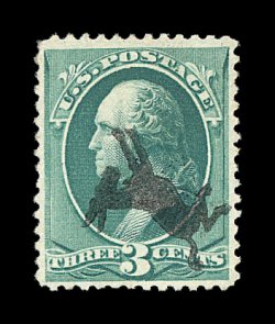 366 O image#207, 3c Blue green, well centered, rich color, cancelled with a superb complete strike of a fancy kicking mule, stamp with two trivial thin specks, very fine. (Image) Est. 100-150
