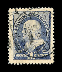 370 O image#212, 1c Ultramarine, gigantic even margins all around, unusually deep color for this in a dark shade, light central strike of a New York town c.d.s., an extremely fine and striking jumbo; 2000 PSE certificate. (Image) 2.00