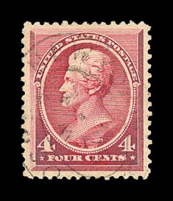 374 O image#215, 4c Carmine, extraordinarily large and perfectly balanced margins all around, unusually rich shade, very light central strike of a double oval postmark, extremely fine; seldom seen in this choice used condition; 1999 PF certificate. (Image) 20.00