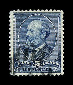 375 O image#216, 5c Indigo, premium used single, marvelously well centered within large margins, prooflike color and impression, light face-free barred oval duplex cancel at bottom left, extremely fine; 2000 PSE certificate. (Image) 14.00