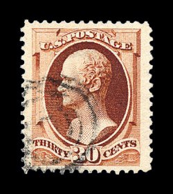 376 O image#217, 30c Orange brown, marvelously choice used example, featuring huge margins all around and being extraordinarily well centered within them, sumptuously rich color, light target cancel, an extremely fine gem; 1994 PF certificate. (Image) 120.00