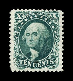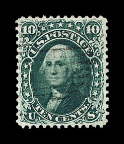 137 O image#62B, 10c Dark green "August", a marvelously choice used single of this exceptionally difficult stamp, possessing incredible centering which is virtually perfect amid uncharacteristically large margins, sumptuously rich color and a well etched impression on fresh paper, very light grid cancel, extremely fine gem; a truly rare stamp in this select quality; 1977 and 1993 PF certificates. (Image) 1,250.00