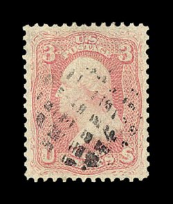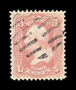 143 O image#64b, 3c Rose pink, gem used example, precisely centered within large margins, vibrant true Rose pink color and a well etched impression on fresh crisp paper, neatly struck open grid cancel, extremely fine; a very pretty stamp; 1999 PF certificate. (Image) 150.00