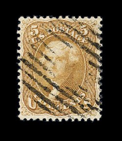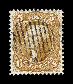 146 O image#67a, 5c Brown yellow, an extraordinarily handsome and choice used example in far superior quality than typically encountered, featuring extravagantly large margins for the issue and being wonderfully well centered within them, gloriously rich color and impression on bright paper, light central strike of a rimless grid cancel, extremely fine; a very scarce and desirable stamp in this gem quality; 1986 PF certificate. (Image) 900.00