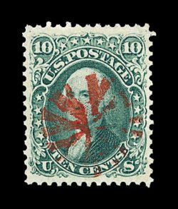 148 O image#68, 10c Yellow green, "TAG" variety, exceptionally well centered, especially bright color on crisp paper, gorgeous strike of a fancy red circle of V's cancel, extremely fine; a stamp with great eye appeal; 2000 PF certificate. (Image) 55.00