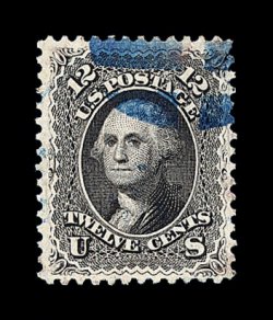 155 O image#69, 12c Black, wide even margins all around, strong rich color and a crisp detailed impression on bright paper, face-free blue segmented cork cancel confind to top right corner, extremely fine; 1997 PSE certificate. (Image) 102.50