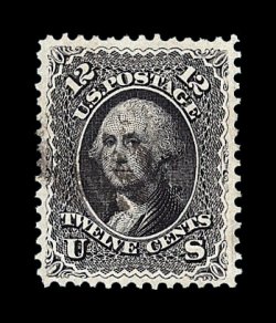 156 O image#69, 12c Black, exquisitely centered within unusually large margins, sharp prooflike impression and deep shade on fresh paper, lightly cancelled, an extremely fine used gem; 1992 PSE and 2000 PF certificates. (Image) 100.00