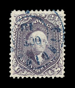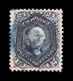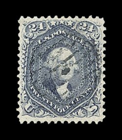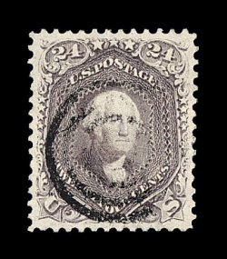 177 O image#78 var., 24c Dark lilac, the used stamp offered here has to be considered as the quintessential example of this rare and distinctive Scott-listed shade variety, as every aspect of this stamp is truly breathtaking, including being incredibly well centered amid huge jumbo margins for any classic stamp, let alone a notorious 24c value from the 1861-62 series, but even more impressive is this stamp's spectacular color in a shade so deep that it could easily be mistaken for the enormously rare blackish violet variety, incredibly detailed impression on bright fresh paper, beautifully cancelled by a blue target and a bit of a red transit c.d.s., an extremely fine gem for the knowledgeable collector who will appreciate the remarkable qualities of this stamp; 2003 PF certificate. (Image) 197.50