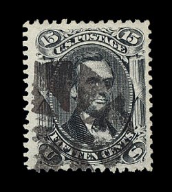 174 O image#77, 15c Black, impressive used example, with four extraordinarily large and well balanced margins which are most uncharacteristic of this stamp, deep color and a well incised impression, light target cancel, extremely fine and handsome; 1997 PF certificate. (Image) 160.00