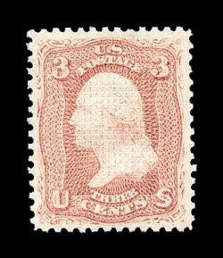 180 og image#83, 3c Rose, "C" grill, magnificent quality mint example, extraordinarily well centered, with unusually large margins all around, outstanding color and impression on bright crisp paper, even its perforations on this select stamp are exceptional, being uniformly even and intact, full clean o.g., lightly hinged, extremely fine; a gem Three Cent "C" Grill that is among the finest original gum examples available; 1981 PF certificate. (Image) 5,250.00
