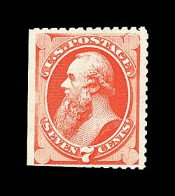 1283 og 171 image#171, 7c Reddish vermilion special printing, without gum as issued, quite well centered with three large margins, closer but well clear at bottom, brilliantly fresh color and a crisp impression on particularly white paper, usual scissor trimmed perforations at left and a few at bottom, very fine; approximately 50 Seven Cent Hard Paper Special Printings are thought to still exist; 1985 PF certificate. (Image) $3,500.00