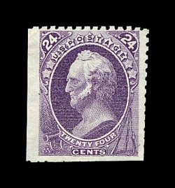 1288 og 175 image#175, 24c Dull purple special printing, without gum as issued, wonderfully fresh example of this rare stamp with some of the largest margins we have seen on any of this value, close but well clear at top, unusually deep strong color and a detailed impression on crisp paper, scissors clipped perforations as is frequently found of a large portion of the hard paper Special Printings, very fine and attractive; 1999 PF certificate. (Image) $3,500.00