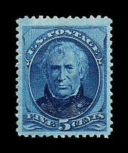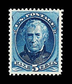 1292 nh 179 image#179, 5c Blue, a pristine mint example of this surprisingly difficult stamp, possessing a crisp freshness that is rarely seen, prooflike color and impression on bright white paper, wonderfully well centered as well, with large margins, full clean o.g. that has never been hinged, extremely fine; photocopy of a 1986 PF certificate for a block of four, this being the top left stamp. (Image) for hinged $600.00
