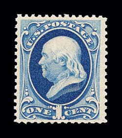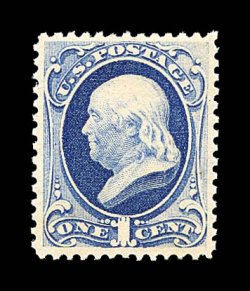 1294 nh 182 image#182, 1c Dark ultramarine, a brilliant "post office" fresh mint single, sumptuously rich color and impression on bright paper, wonderfully well centered, unblemished o.g., never hinged, extremely fine; a terribly challenging stamp to find never hinged, particularly in this premium condition; 2003 PF certificate. (Image) for hinged 325.00