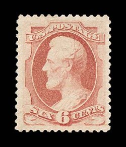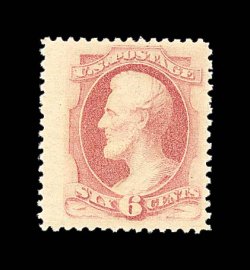 1299 og 186 image#186, 6c Pink, a premium quality mint example of this scarce Bank Note, featuring much larger margins than usual and being wonderfully well centered within them, excellent color and impression, wonderfully fresh full o.g., lightly hinged, extremely fine; a a premium example of this, as the 1879 Six Cent American Bank Note is notoriously difficult sound and with fresh original gum, especially this choice; 1990 PF certificate. (Image) $1,100.00
