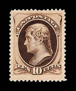 1302 og 187 image#187, 10c Brown, without secret mark, rather well centered within large margins, deep rich color, full o.g., very fine; original gum examples of this stamp are quite elusive. (Image) $3,250.00