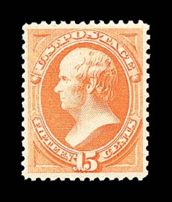 1318 og 199 image#199, 15c Orange special printing, without gum as issued, a rather fresh example of this exceedingly rare stamp, excellent color, centered well clear of the design, small thinned spot as often, pinhole and a tiny inclusion speck, very fine appearance; an especially attractive example of this very elusive rarity of which approximately 30 copies of the Fifteen Cent Soft Paper Special Printing are thought to exist; signed "S.A." (Spencer Anderson) and accompanied by a 2002 PSE certificate. (Image) $27,500.00