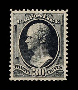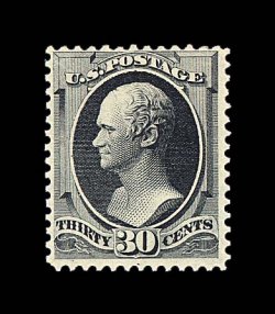 1308 og 190 var. image#190 var., 30c Greenish black, a choice mint example of this seldom seen shade variety which is listed in Scott, exceptionally well centered within large margins, strong color in this distinctive shade, full o.g., lightly hinged, extremely fine and quite handsome; 2004 PF certificate specifically identifying this as the greenish black shade. (Image) $1,100.00