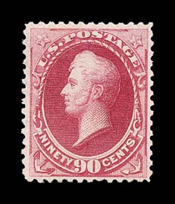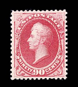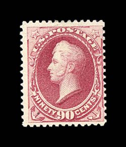 1311 nh 191 image#191, 90c Carmine, a remarkably choice "post office" fresh mint example of this scarce high value, possessing a wonderful overall freshness that few others enjoy, with sumptuously rich color and a crisp impression on fresh paper, very well centered, pristine o.g., never hinged, extremely fine overall; one of the very few certified never hinged examples of a #191 in existence; 1999 PF certificate. (Image) for hinged $2,250.00