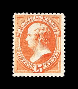 1305 nh 189 image#189, 15c Red orange, an incredibly fresh and choice mint example, in a remarkable state of preservation, featuring absolutely radiant color on immaculately white paper, outstanding centering within uncommonly large and balanced margins, full clean original gum that is never hinged, extremely fine; a gem single of a stamp that is seldom found so large and yet so choice; 1985 PF certificate for a block of twelve, this being a selected stamp from the bottom row. (Image) for hinged $350.00