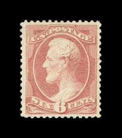 1325 og 208a image#208a, 6c Brown red, exceptionally well centered amid generously large margins, surrounded by full even perforations, sumptuously rich color and impression, full o.g., lightly hinged, extremely fine; an extraordinarily handsome stamp; 1985 PF certificate. (Image) $550.00