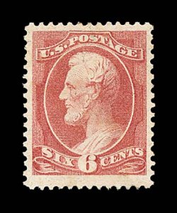1324 og 208a image#208a, 6c Brown red, a fabulous quality mint example, possessing margins of extraordinary size for this stamp and being perfectly centered within them, brilliant rich color and marvelously strong and highly detailed impression, full o.g., with just the barest trace of hinging, extremely fine gem; an especially fresh and handsome example of this difficult stamp. (Image) $550.00