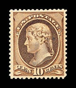 1326 og 209 image#209, 10c Brown, extraordinarily bright and fresh, deep luxuriant color and impression, excellent centering within large margins, pristine o.g. with just the barest trace of hinging (although accompanying certificate states "never hinged"), small natural inclusion, extremely fine; photocopy of a 2000 PF certificate for a block of six from which this stamp was taken. (Image) 175.00