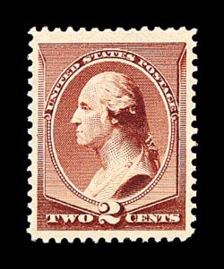 1328 nh 210 image#210, 2c Red brown, lovely jumbo-margined single with extraordinarily large to huge margins, beautifully centered and fresh, full clean o.g., never hinged, extremely fine; 1984 PF certificate. (Image) $120.00